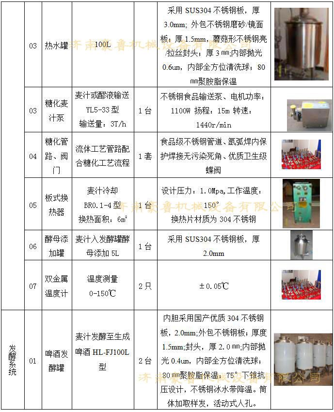 - HLS系列學校啤酒實驗設備,主要包括糖化部分和發(fā)酵部分,二者通過綜合管道接通,其系統(tǒng)配置全面,設備技能先進,操作靈活,安全穩(wěn)定,滿足大專院校啤酒生產、教學要求,也可以根據(jù)用戶需要進行設計。 糖化部分由糊化鍋、糖化鍋、過濾槽、煮沸鍋、漩沉槽和換熱器構成,并且各部件之間通過管道接通,糊化鍋和糖化鍋連接有原料輸入管道;發(fā)酵部分由6-8個發(fā)酵罐構成,發(fā)酵罐之間連接有洗滌殺菌管道、物料管道、冷媒回流管道和CO2管道。